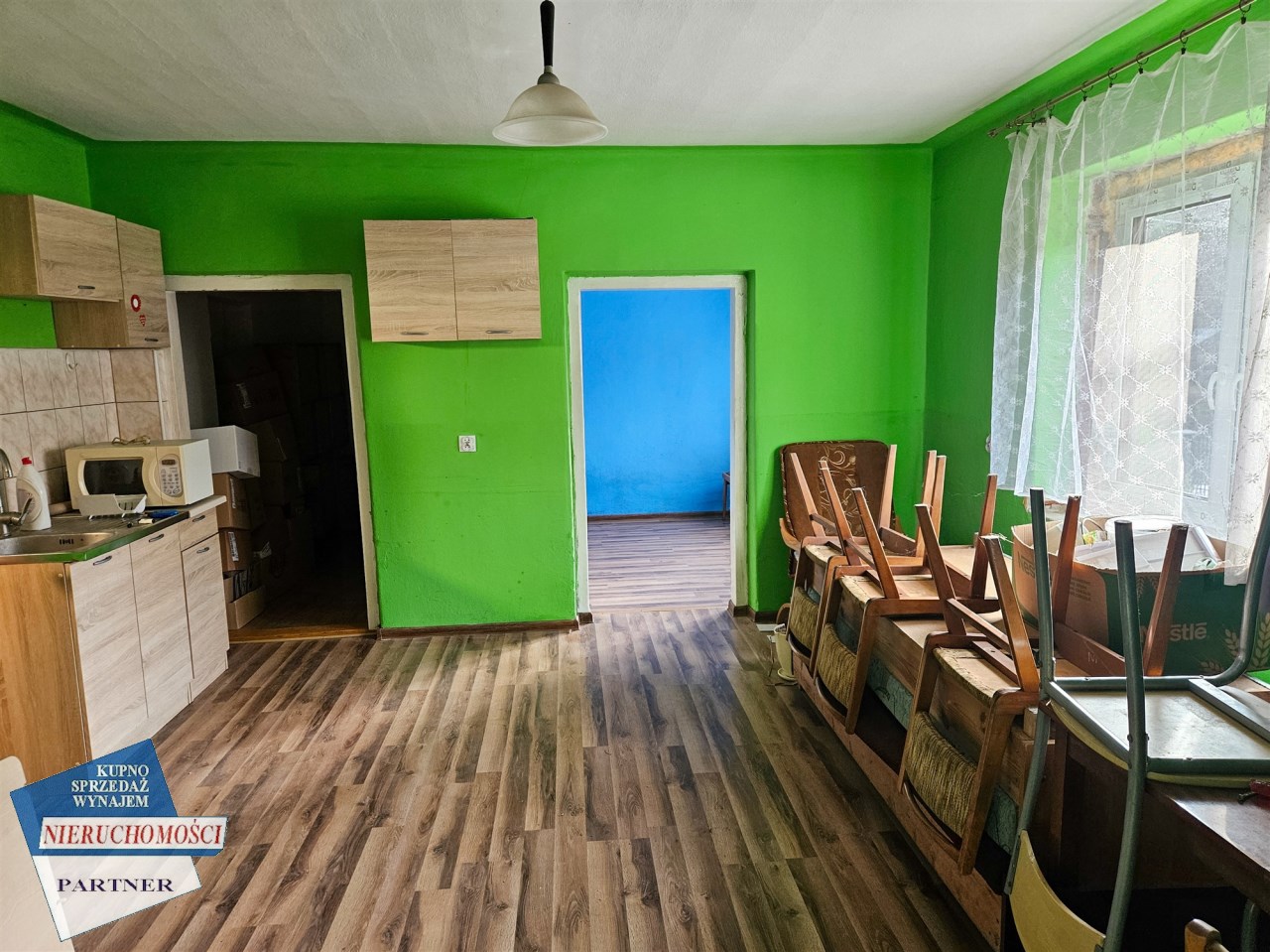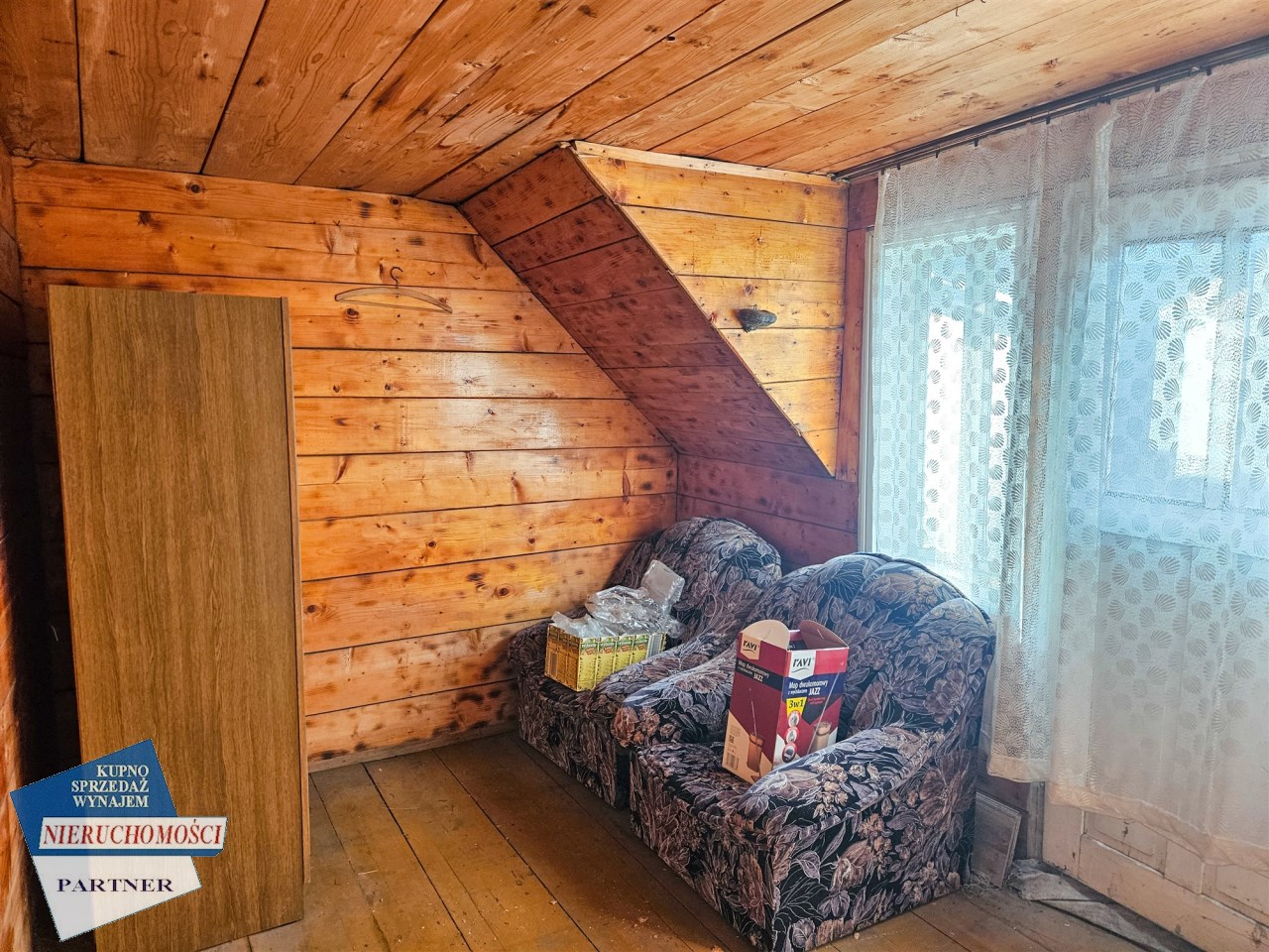 Budynek wymaga remontu, posiada dwie kondygnacje parter plus użytkowa poddasze o powierzchni użytkowej około 100 m2, całkowitej około 130 m2.