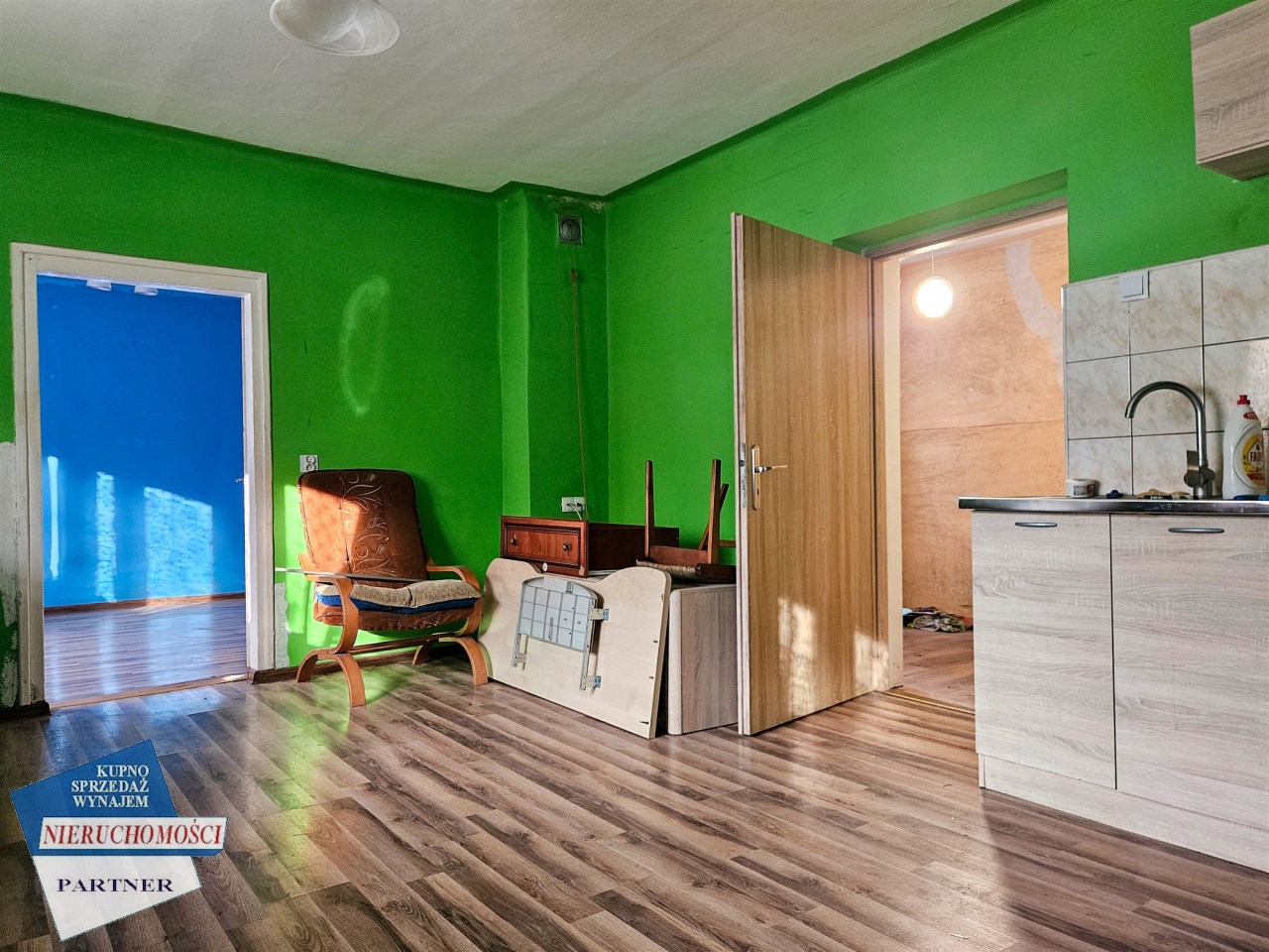 Parter: dwa pokoje, kuchnia, łazienka, pomieszczenie gospodarcze, przedpokój. Nowe okna PCV, oraz nowa instalacja elektryczna.