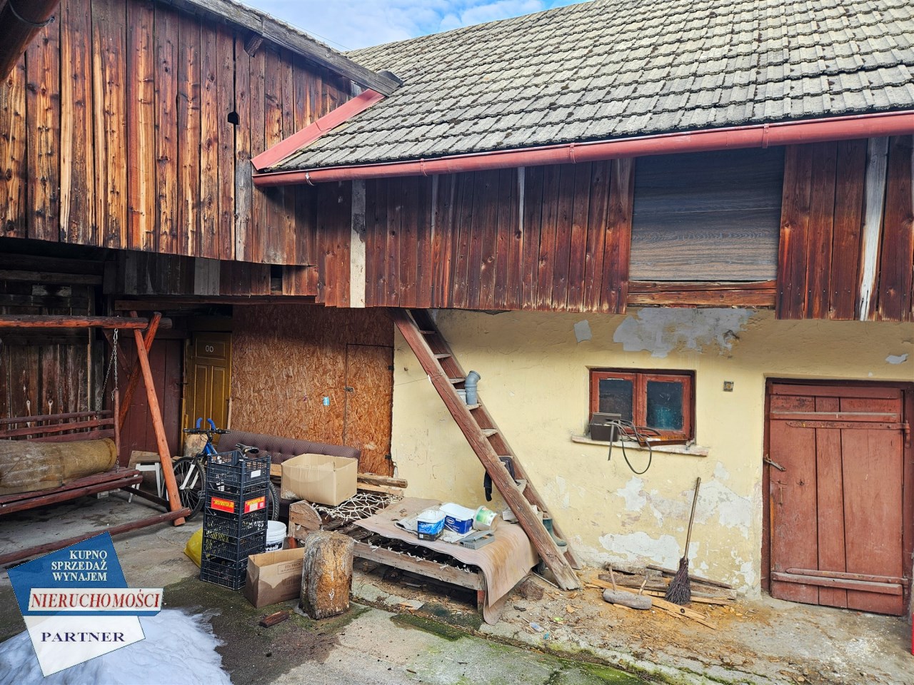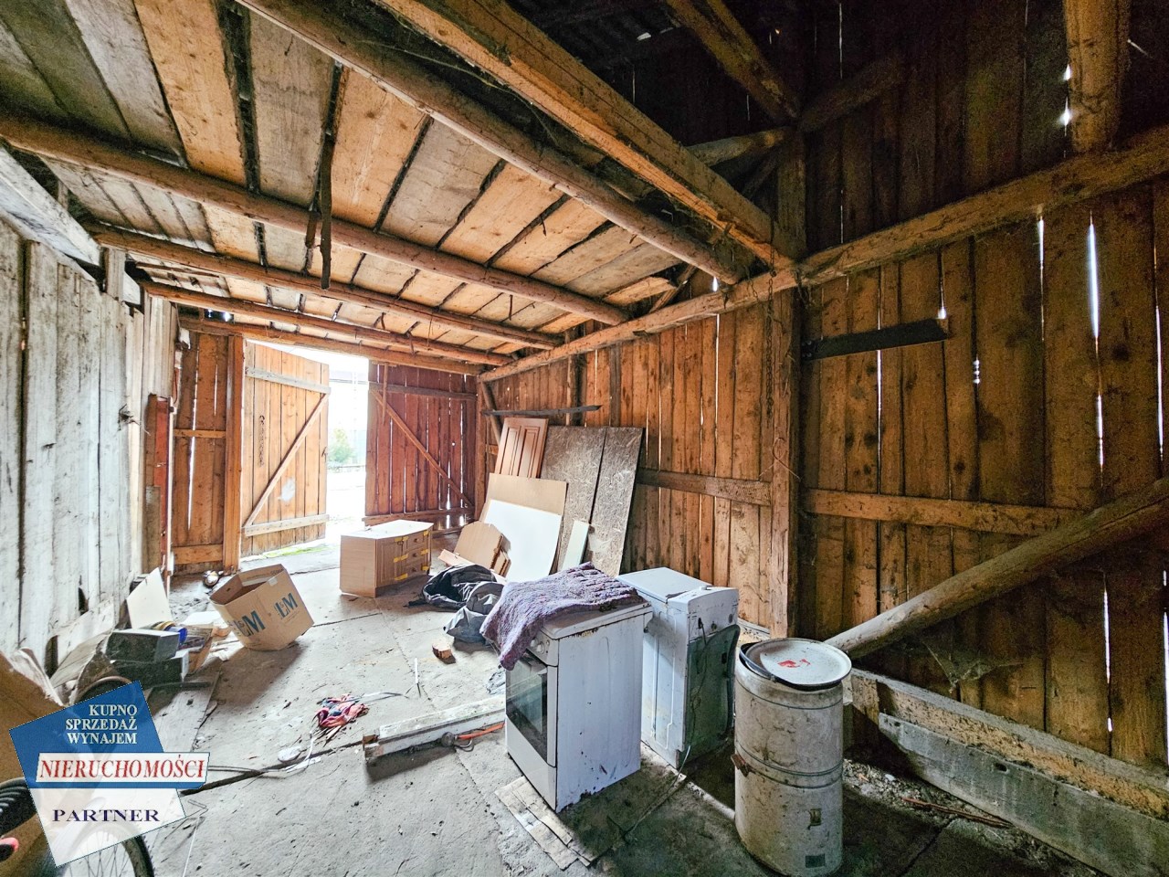 Do budynku przylegają zabudowania gospodarcze stodoły (około 250 m2), dające duży potencjał adaptacyjny pod agroturystykę, pracownie itp.