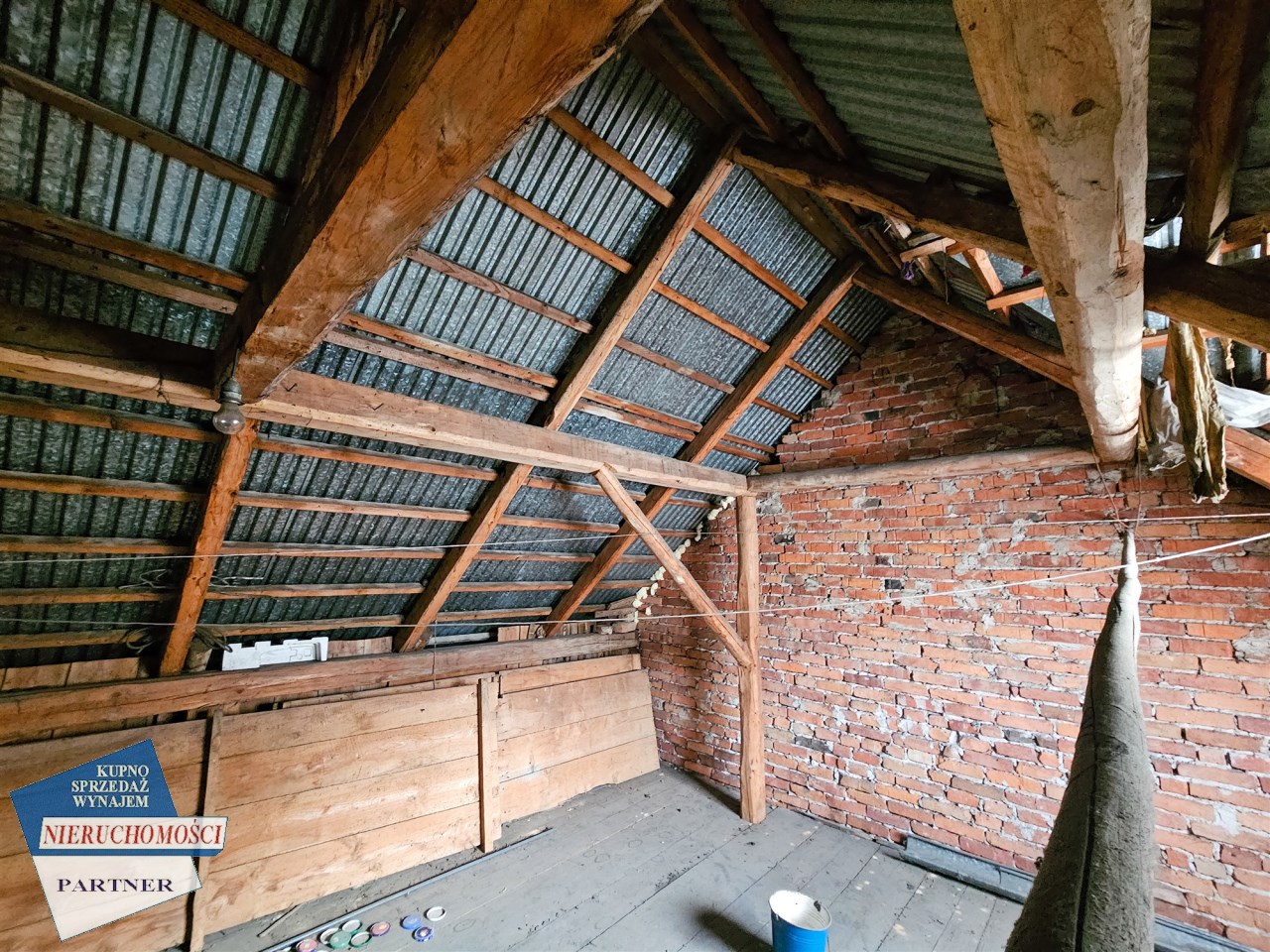 Poddasze: wydzielony jeden pokój, pozostała część poddasza do adaptacji.