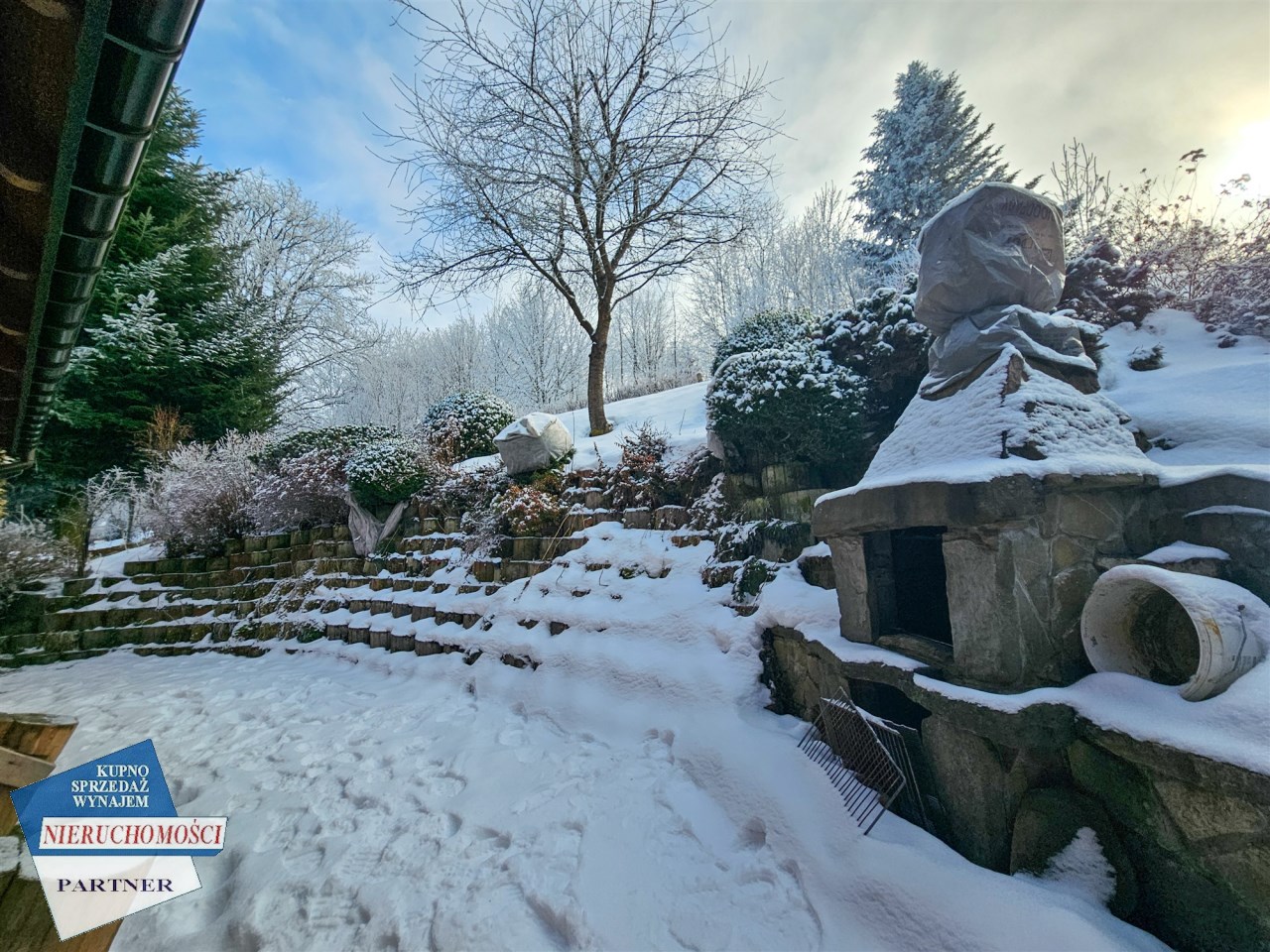 Działka ma powierzchnię 2000 m2 o ekspozycji północnej, pięknie utrzymana licznymi nasadzeniami krzewów, drzew owocowych , oraz elementami małej architektury, grill, murki itp.