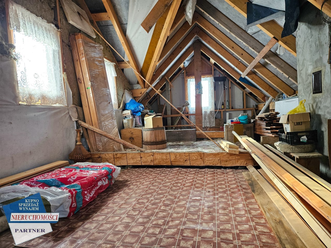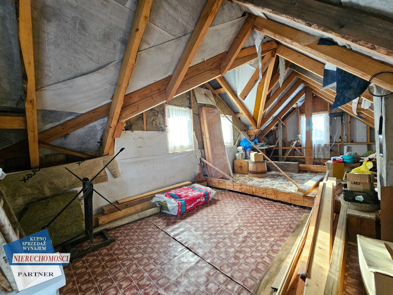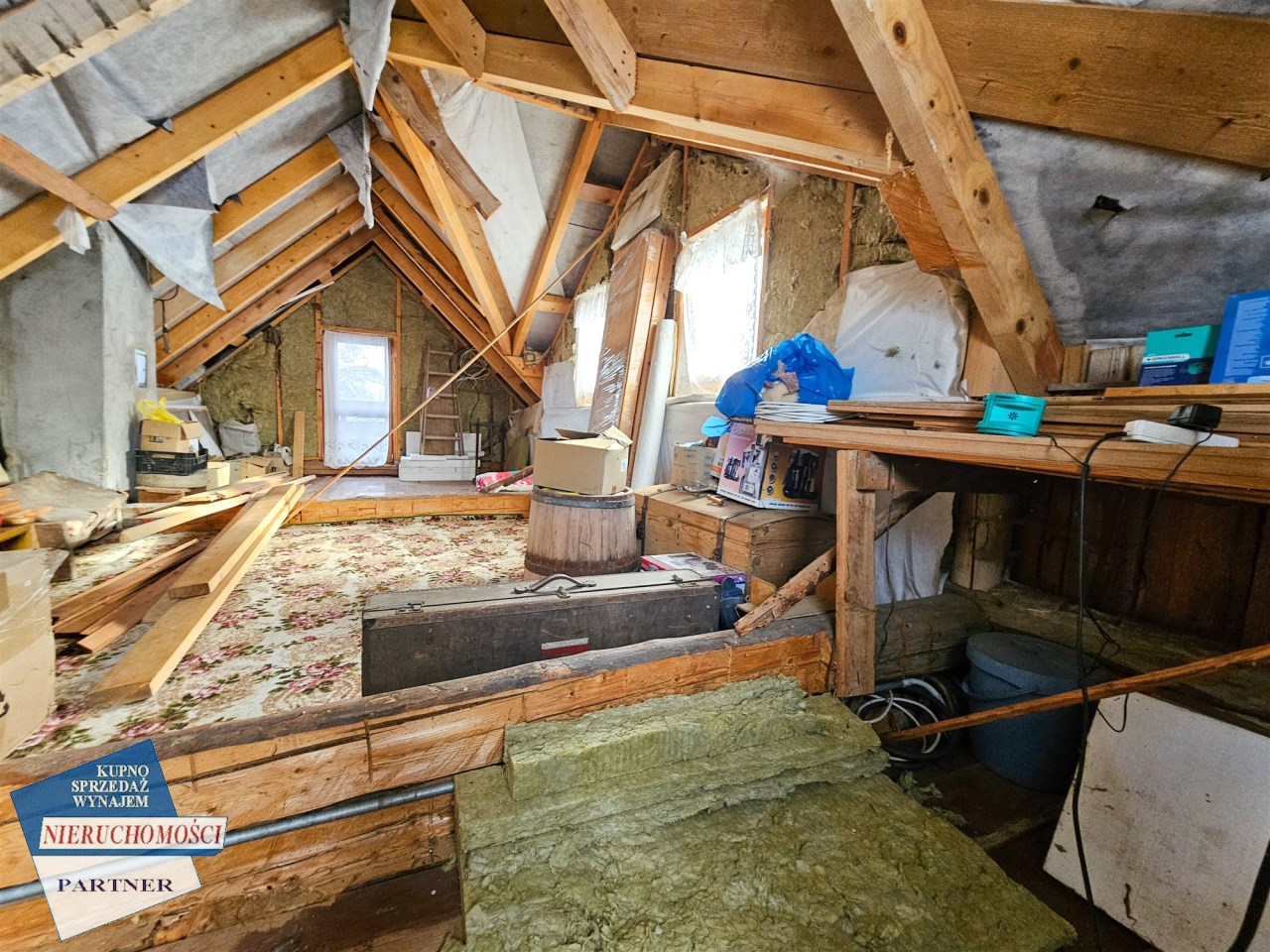 poddasze z potencjałem wymagające wykończenia, dające możliwością adaptacji na jeden lub dwa mniejsze pokoje oraz wc.