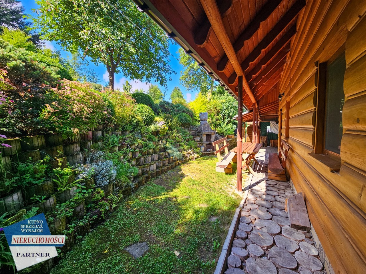 Działka ma powierzchnię 2000 m2, położona jest na północnym zboczu, pięknie utrzymana z nasadzenia różnorodnych krzewów, drzewek, oraz licznymi elementami małej architektury, grill, murki itp.