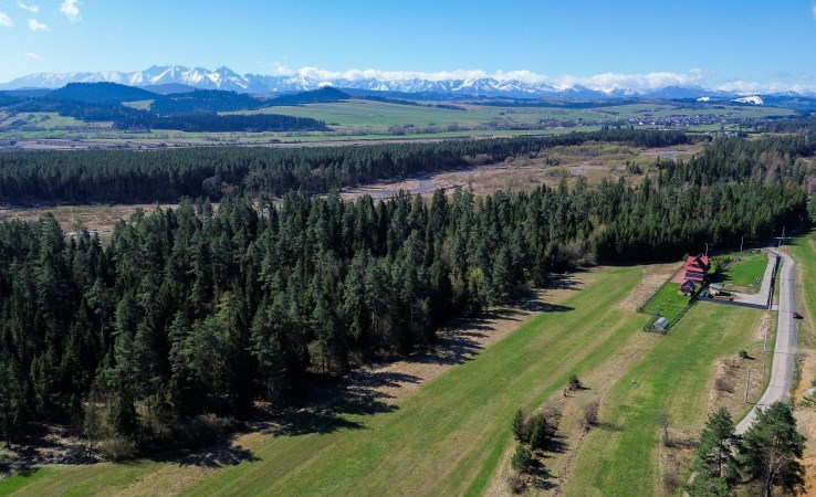 Z działki widok na Gorce oraz częściowy na Tatry.